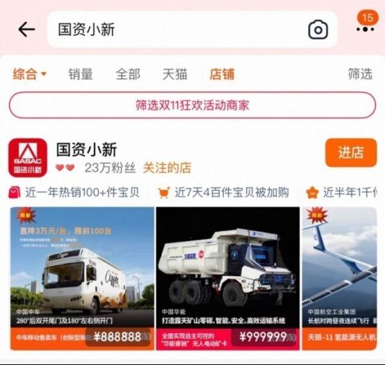 (图:国资小新淘宝店今年双11已上新,该店铺已经积累了23万粉丝)